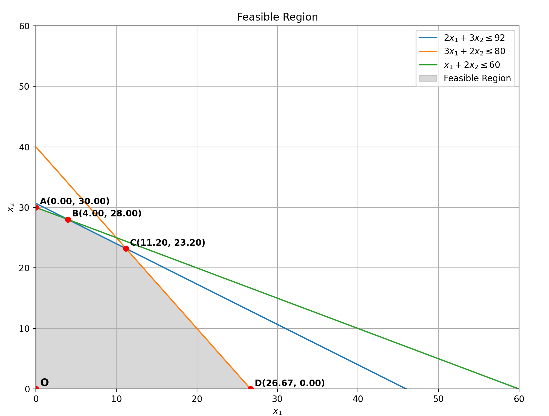 - C(11.2, 23.2):约束1与约束2的交点