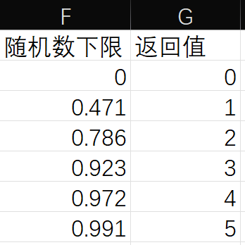- 计算累积概率表:$p_0, \quad p_0 + p_1, \quad p_0 + p_1 + p_2, \quad \dots$